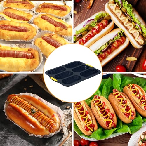 • Obsoorth Silicone Baguette Bread Pan Non-stick & Heat-resistance Silicone Bread Loaf Pan Porous Hot Dog Bun Pans 6 Compartment Delicious French Bread Baking Pan Hot Dog Buns