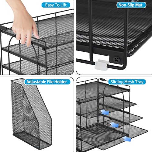 • AUPSEN Desk Organizers and Accessories, 5-Tier Desktop Paper File Organizer with Removable File Holder, Desk Accessories & Workspace Organization for Home Office Supplies (Black)