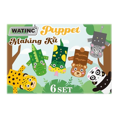 • WATINC 6Pcs Hand Puppet Making Kit, Art Craft Felt Sock Puppet Toys, Creative DIY Make Your Own Pompoms Wiggle Googly Eyes Storytelling Role Play Party Supplies Gift for Girls Boys (Wild Animals B)