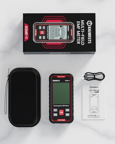 • KAIWEETS EMF Detector, 3-in-1 Handheld EMF Meter Detects EF, RF, MF, WiFi Signal, Rechargeable Radiation Detector with 3 Color Backlight and Sound Alarm, Suitable for Home, Office, Ghost Hunting