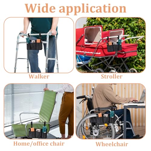 • Wheelchair Side Bag, Wheelchairs Storage Bag Wheelchair Pouch Wheelchairs Armrest Bags with Cup Holder Elderly Walking Aid Suspension Bags Wheel Chair Accessories for Walkers Rollators (Black)