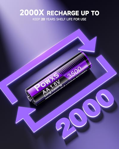 • POWXS Rechargeable Lithium AA Batteries with Charger 8-Pack 3500mWh, 2000 Cycles Li-ion/Ni-MH Fast Charging Station, USB-C for Blink Camera/Game Controller,Compatible with AA/AAA (AA Included)