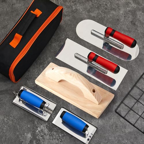 • MorningRo 6pcs Concrete Hand Tools Set Masonry Tools Includes Stainless Steel Concrete Hand Edger, Groover, Wood Float, Finishing Trowel, Pool Trowel and Tool Bag for Cement Beginner Kit