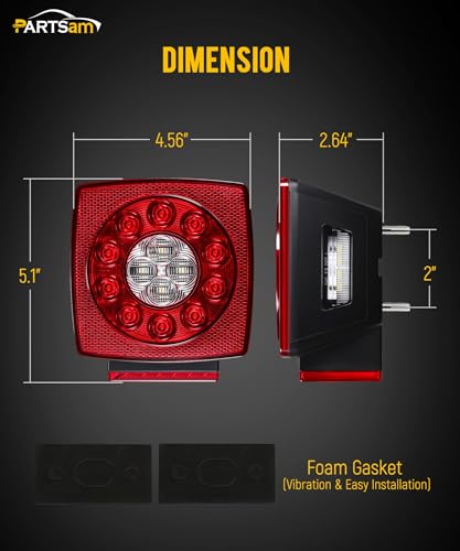 • Partsam 12V Submersible Square Led Trailer Lights, Red White LED Stop Turn Tail Reverse Backup License Side Marker Running Light Lamp for Trailers Under 80", Truck, IP68, Red Clear Lens