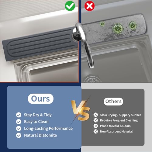 • Kitchen Faucet Mat, Diatomite Sink Faucet Mat Splash Guard for Kitchen, Water Absorbing Stone Tray for Sink, Quick Drying Faucet Mat for Kitchen Sink, Absorbent Stone Drying Tray for Bathroom Counter