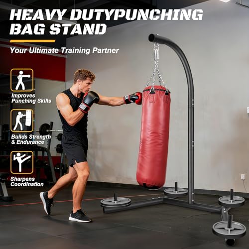 • Upgraded Punching Bag Stand, Heavy Duty Boxing Stand, Steel Sandbag Rack Boxing Bag Stand, Freestanding Durable Training Equipment Up to 100 lbs for Home & Gym Fitness Stable Steel, Stand Only
