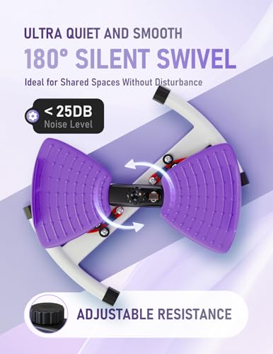 • KOVAFLEX Waist Twister Machine with Smart Digital Counter and Resistance Bands 300 Lbs Capacity, Noiseless Ab Twister Board for Home Exercise, Fitness Equipment Ideal for Women to Burn Belly Fat and Tone Body(Purple)