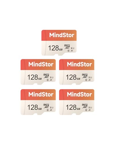 • Micro SDXC 128GB Memory Card, MindStor 90MB/s Read Speed TF Card with Adapter, U1, A1 Rated, HD 1080P Video Loop Recording Support, Waterproof, for Security Camera, Dash Cam, Drive Recorder, 5 Pack