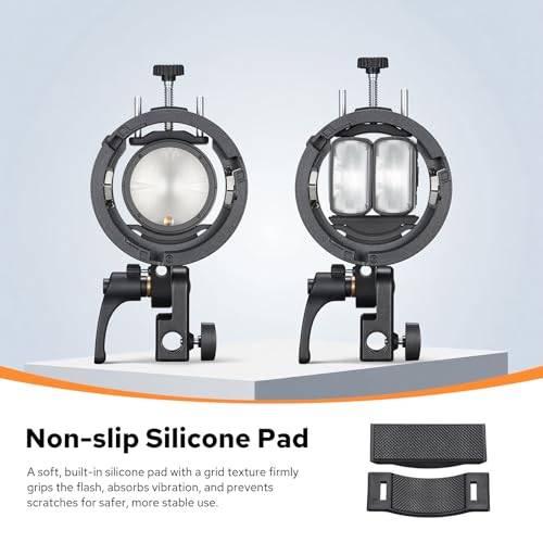 • Godox S3 Bowens Mount Flash Bracket, Compact & Lightweight with ±90° Tilt, Non-Slip Silicon Padding for Stable Setup, for AD300/AD200/AD100 Outdoor Flash, for V100/V1Pro/V1/V860III Speedlite