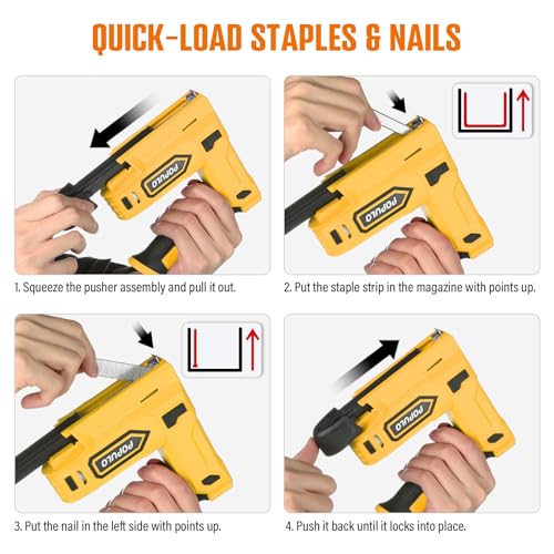 • POPULO Electric Staple Gun, 2 in 1 Electric Stapler Tacker 4V Cordless Brad Nailer Kit, Battery Powered Nail Gun for Upholstery, Carpentry, DIY with Staple Remover, 1600 Staples and Nails, Yellow