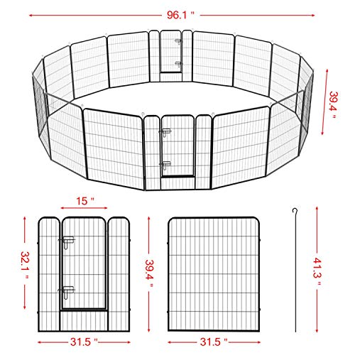 Topeakmart 16 Panel 40-inch Dog playpen - Heavy Duty Portable Metal Pets Playpen Foldable Dog Exercise Pen Barrier Kennel Puppy Fence w/ 2 Pcs Door Outdoor Indoor Black, 40"