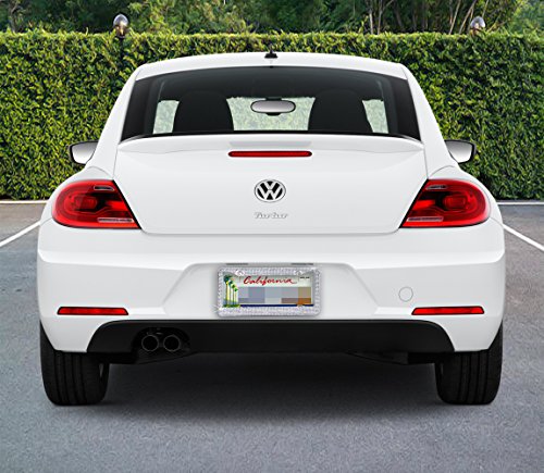 • Zento Deals Shiny Crystal Bling Metal Chrome License Plate Frame with Anti-Theft Screw Caps