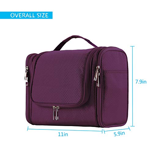 • Extra Large Capacity Hanging Toiletry Bag for Men & Women, Portable Waterproof Bathroom Shower Bag, Lightweight Dopp kit Shaving Bag, Sturdy Metal Hook Organizer Makeup Bag (Purple)