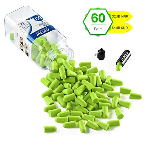 • Mpow Sleeping Earplugs Soft Foam 60 Pairs, 34Db SNR Noise Reduction Earplugs, with A Carry Case, Professional Ear Plugs for Sleeping, Snoring, Studying, Working, Mowing, Shooting, Travelling
