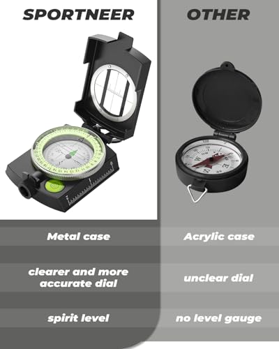 • Compass, Sportneer Compass Hiking Survival Compass Military Grade Waterproof Boy Scout Compass for Kids Gift Backpacking Camping Hiking Map Navigation