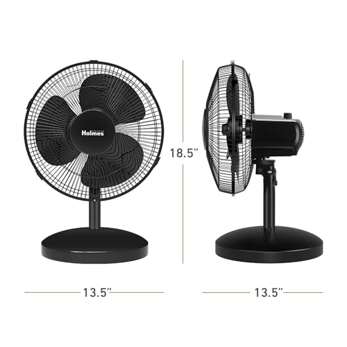 • HOLMES 12" Table Fan, 75° Oscillation, 3 Speeds, 15° Adjustable Head Tilt, Ideal for Home, Bedroom or Office, Black