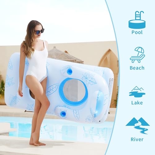 Inflatable Pool Lounger Float Adult, BAIAI Tanning Pool Lounger Float with Cup Holders Water Pool Chair Floats with Headrest, Backrest & Footrest Blow Up Summer Beach Floaties Cool Pool Party Toys, blue+white, Large