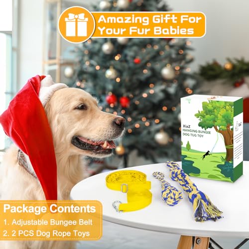 • XiaZ Tug of War Dog Toy, Interactive Dogs Toy Bungee Hanging Tether with 2 Chew Rope Toys, Heavy Duty Puppy Outdoor Activity Aggressive Chewers Best Small to Large Boredom Exercise and Play (Yellow)