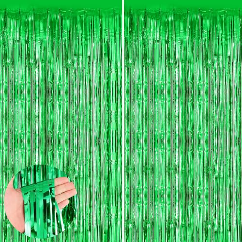• Green 2 Pack Metallic Tinsel Foil Fringe Curtains, 3.3x8.3 Feet Green Streamers for Party, Door Streamers Party Decorations, Party Streamers for Birthday Christmas Party Decorations