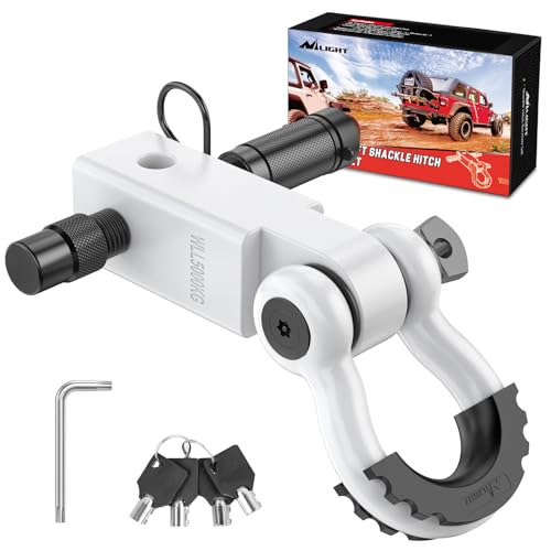 • Nilight Anti-Theft Shackle Hitch Receiver 2Inch 45000 LBs Breaking Strength 3/4" Anti-Theft D Ring Shackle 5/8" Trailer Hitch Lock Pin Heavy Duty Solid Towing Kit for Trucks Off Road (White)