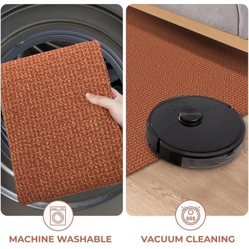 • KOZYFLY Long Runners for Hallways 3x12 ft Washable Kitchen Runner Non Slip Rubber Backed Hallway Rugs Cotton Entryway Runner Rug Floor Carpet for Indoor Hall, Backdoor, Kitchen, Orange/Tan