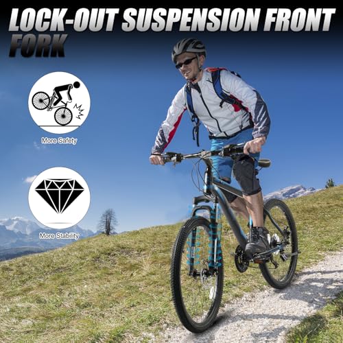 • Ktaxon Mountain Bike 24 Inch Men & Women Mountain Bike 21-Speed Adult Bikes, Double Disc Brake, Suspension Fork, High Carbon Steel Frame (Matte Blue)