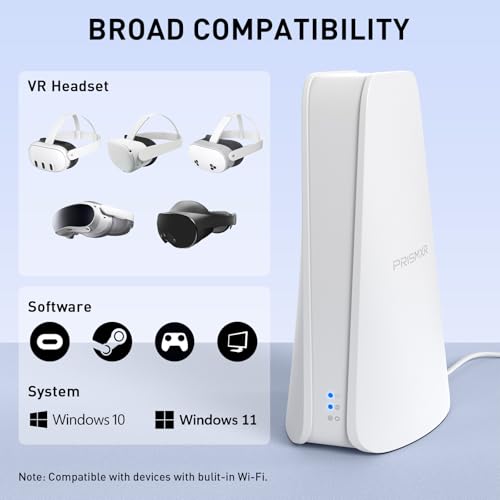 • PRISMXR VR Router Replace Link Cable Compatible with Meta Quest 3S/3/2/Pro, PC-VR Streaming Air Link AX1500 WiFi6, Wireless Stable and Fast (Puppis S1 Lite)